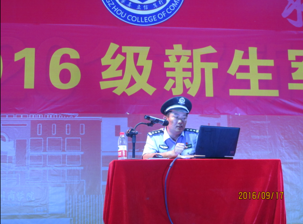 2016年9月17日晚上19:00分,学校学生处、保卫处利用新生军训的有利时机,组织全体新生在运动场开展法制安全教育讲座活动。